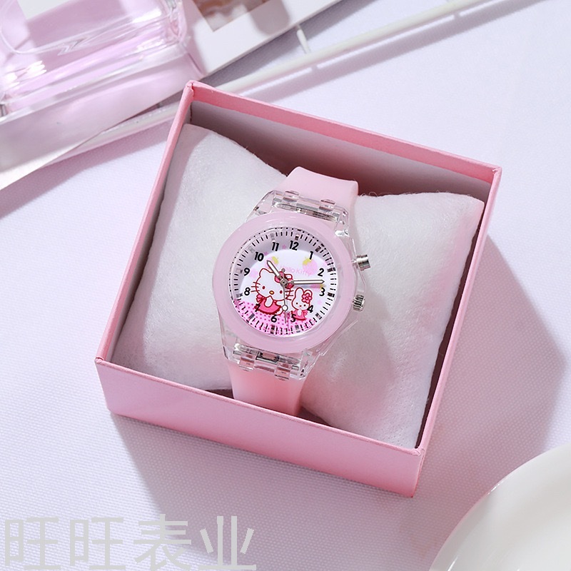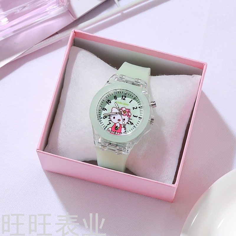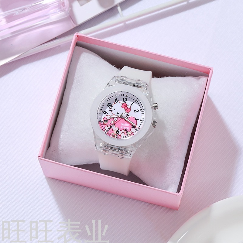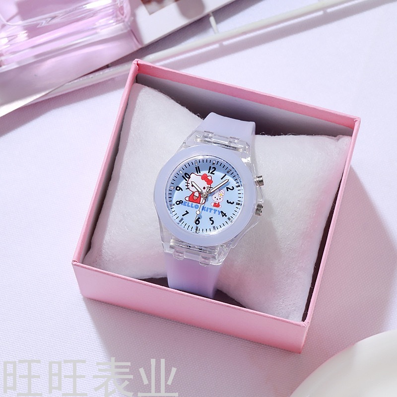 Hello Kitty Cartoon Watch Luminous Glow Fashion Silicone Children's Watch Primary School Student Watch Women's Style New