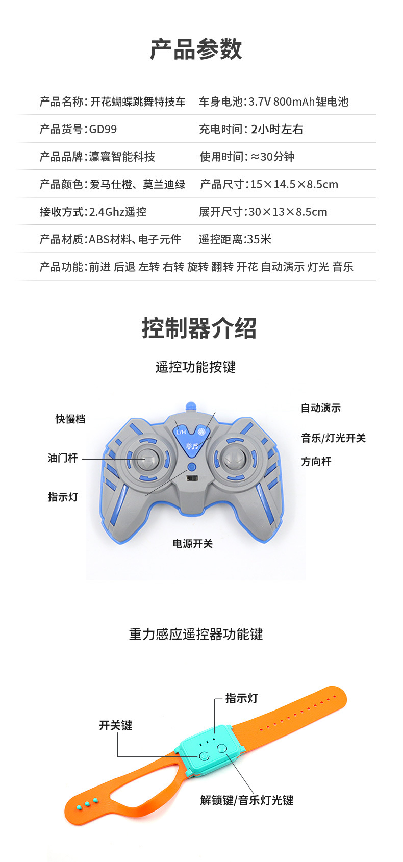 Cross-Border Gesture Sensing Children's Toy Car RC Car Remote Control Car Watch Stunt Car Deformation Electric Remote Control Toy