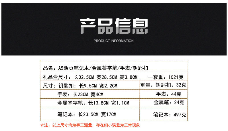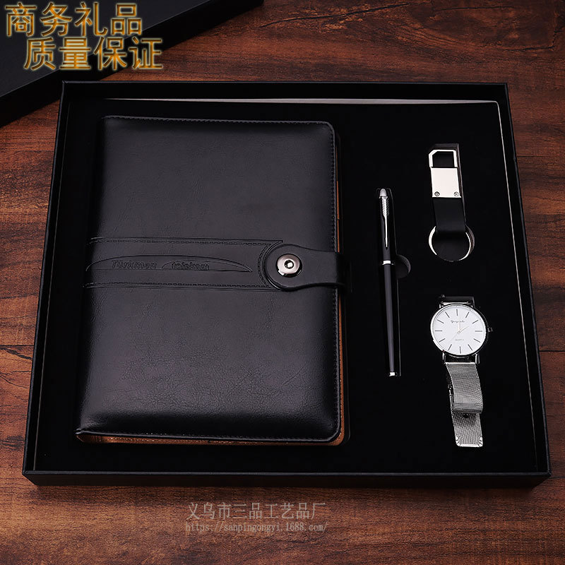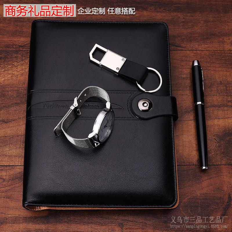 A5 Loose Spiral Notebook Set Watch Gift Metal Roller Pen Keychain Business Office Notebook Gift Set