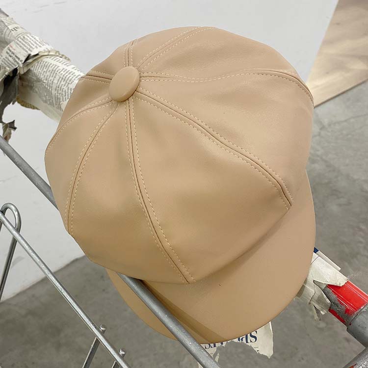 Leisure cap and Korean Style Spring and Autumn Fashion All-Matching Leather Hat Peaked Cap Beret