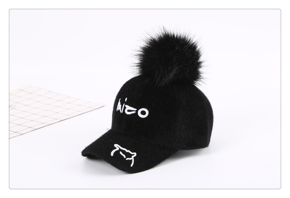 Factory Spot Direct Sales 2021 Autumn And Winter Parent-Child Big Fur Ball Warm Sun-Proof Baseball Cap With Various Colors And Styles