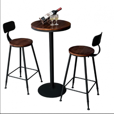 Iron Retro High-Leg Table and Chair Bar Stool Solid Wood Table and Chair Combination Bar Counter Small Eight-Immortal Table Small round Table Eight-Immortal Table Leather Stool